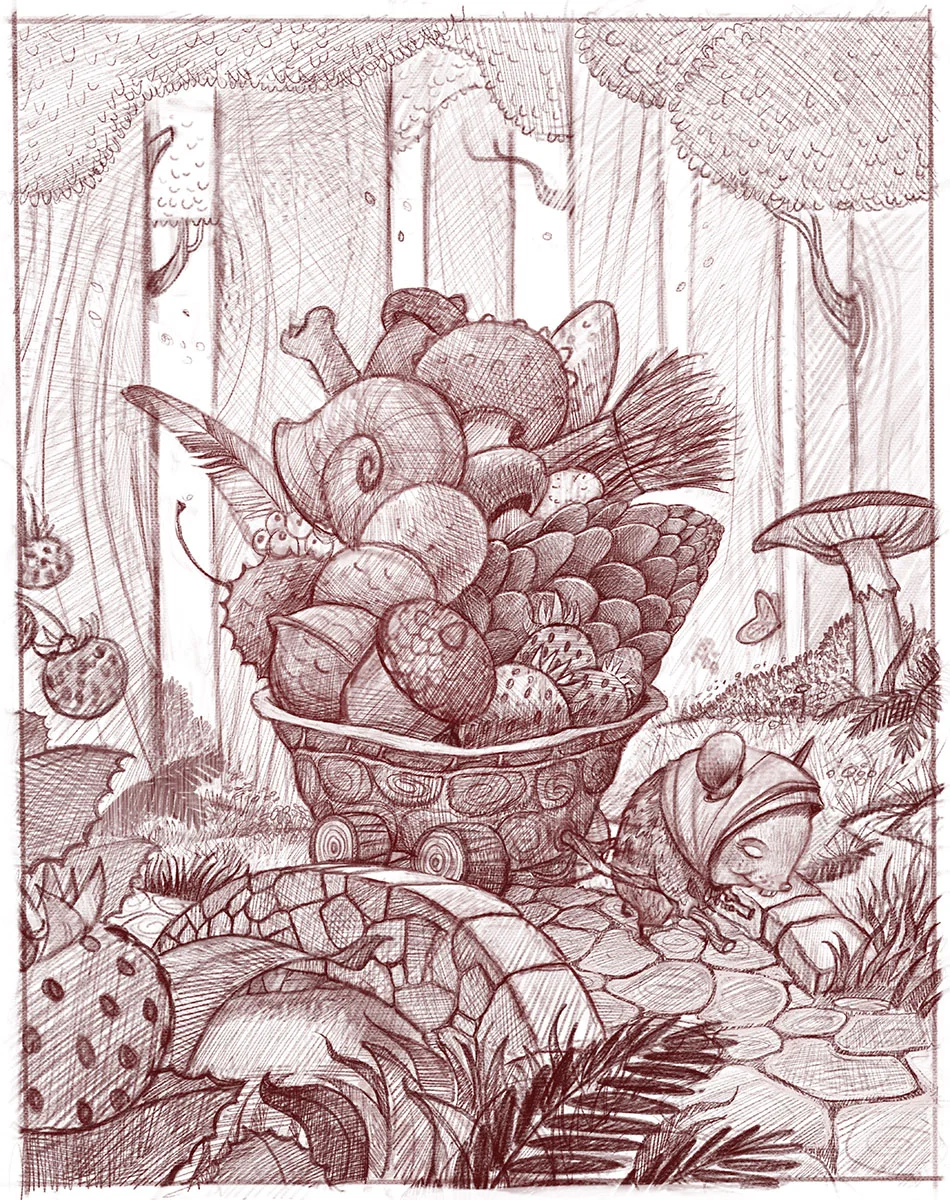 He’ll be sketching this adorable image of a little mouse bringing home a bounty (so many fun details!). Plus, he'll be fielding your questions about illustration, so be sure to check it out.